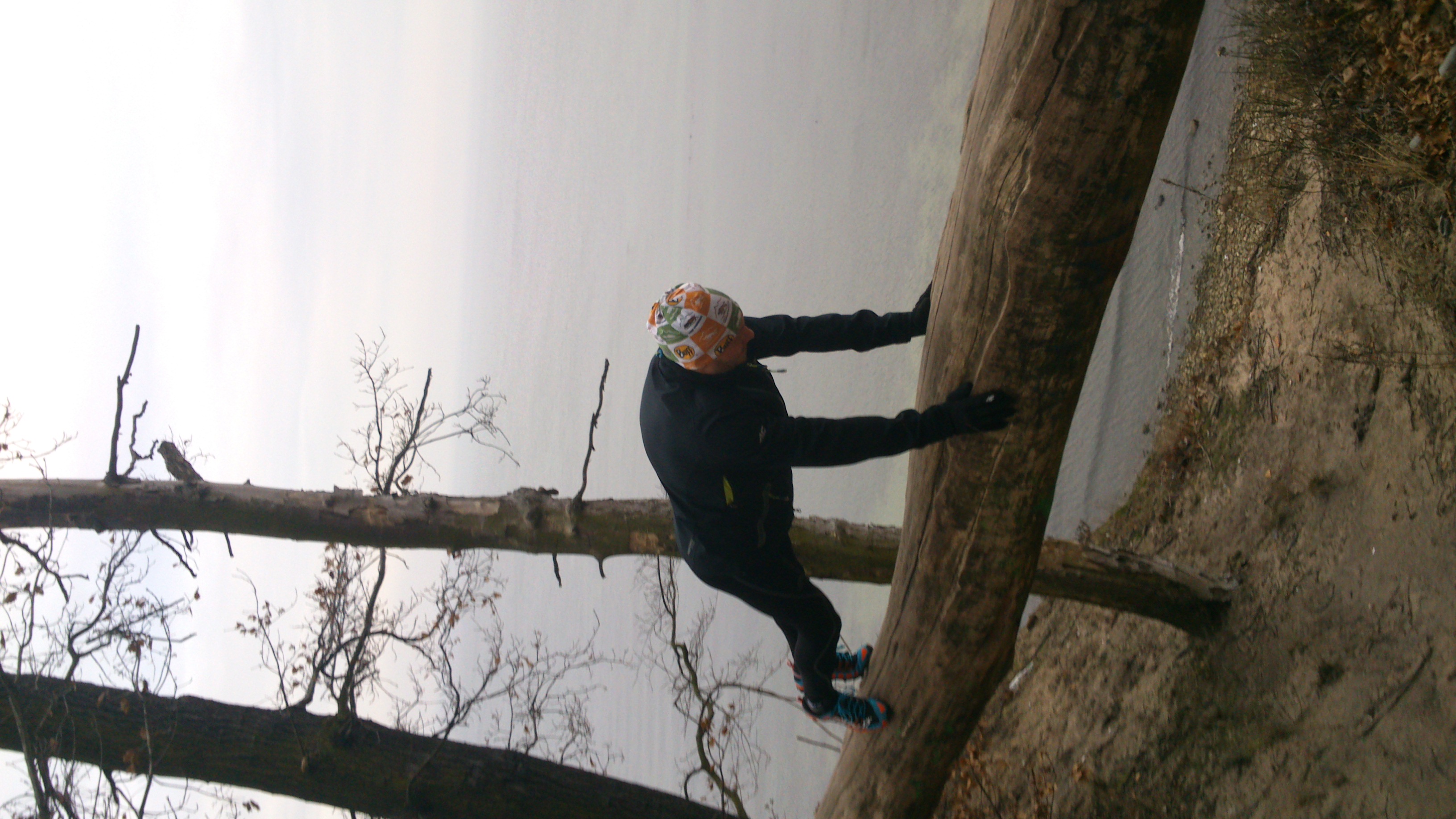 A teraz do pierwszego dłuższego zbiegu. Rozpędzam się, Negra biegnie przede mną. Jednak im bardziej ja przyspieszam tym szybciej ona biegnie. Lecimy na złamanie karku, teraz bestia wbija natomiast swoje pazury by skutecznie i pewnie trzymać mnie na stromej ścieżce. Nie jestem w stanie natychmiast wyhamować! Przypadkowi spacerowicze odskakują nam z drogi. Zastanawiam się tylko, czy moje nogi to wytrzymają ;). Docieramy na koniec zbiegu. Muszę przyznać, że nigdy tak szybko nie zbiegałem z tego wzniesienia, czując się jednocześnie tak pewnie! Odpoczywam, nogi dostały i to mocno, docierają do nas wcześniej mijani spacerowicze, którzy nie mogą wyjść ze zdziwienia jak można było tak biec na złamanie karku 😉 Sam jestem w szoku! Dobra czas lekko wyluzować miało być roztruchtanie, kolejne górki już na luzie, nawet spacerowo. Ponieważ jako pierwszy z naszego biegowego grona postanowiłem przetestować inov-8 i co rusz ktoś mnie pyta co i jak, czułem się w obowiązku zrobić też małą sesję zdjęciową w której pomogła mi moja żona Kasia. Przy okazji sprawdziłem, jak x-talony 212 spisują się w trakcie pokonywania przeróżnych przeszkód terenowych żywcem wziętych z biegów z przeszkodami i ponownie test na duży plus. Nic dziwnego na stronie inov-8 znajduję informację, że Jonathan Albon zdobył tytuł mistrza świata 2014 w biegach z przeszkodami właśnie w butach x-talon 212. Jednak w tym miejscu muszę zaznaczyć, że w przypadku kontaktu podeszwy ze śliskim korzeniem lub kamieniem możemy wpaść w uślizg i stracić kontrolę nad naszymi nogami. Tą część testu uważam, za najważniejszą ze względu na bardzo techniczny i wręcz górski charakter trasy, na której przygotowywałem się do biegu Rzeźnika i Biegu 7 Dolin.